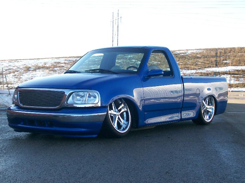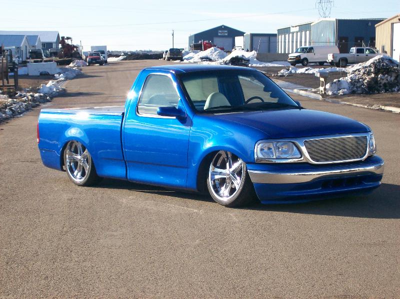 Shaved handles, Subaru Rally Blue, painted bed caps, sport mirrors, Billet grille