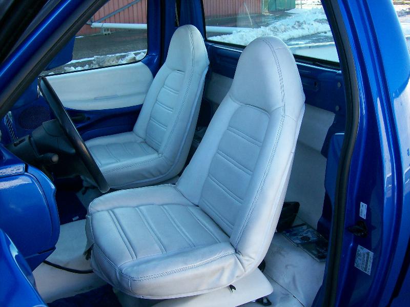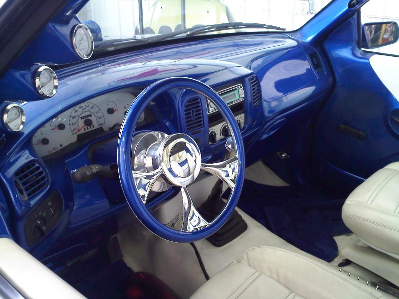 billet specialties steering wheel with painted half wrap, white vinyl seats , headliner and inserts on the door panels, painted all other panels to match