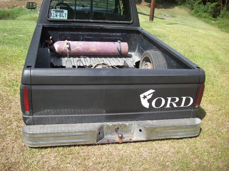 shaved tailgate and logos, flat black, famous ford logo, license plate in back window
