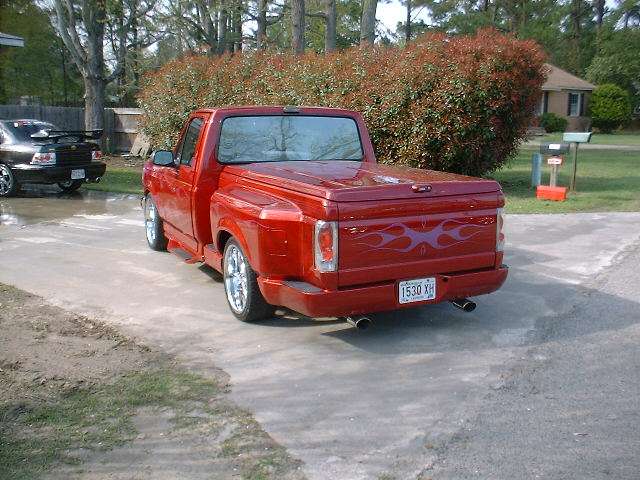 shaved emblems, handles, billet ant, cervini hood, hard tonnuea cover, flamed paint job, crystal clear head lights and parking lights