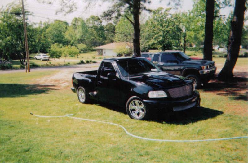 Shaved tailgate and fenders, lightning cap, ram air hood, matching top and bottom grilles, billet antenna, sport mirrors, roll pan