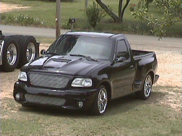 Shaved tailgate and fenders, lightning cap, ram air hood, matching top and bottom grilles, billet antenna, sport mirrors, roll pan