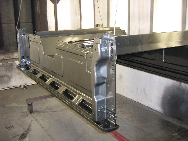 Her is the box with the first coat of Zich Rich Prime Powder on it getting ready to leave the booth and go into the oven.