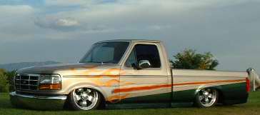 House of Kolors and PPG paint, Custom Graphics, Shaved: Seams, Gas filler (relocated in bed), door handles, tailgate handle (relocated), emblems....