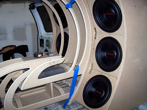 one sick ass stereo , built by Certified Sounds(Derrick Pace), orion, 6-12's, 3- 6 1/2" seperates, floating amps to the roof, 3- tvs, 7000 watts.