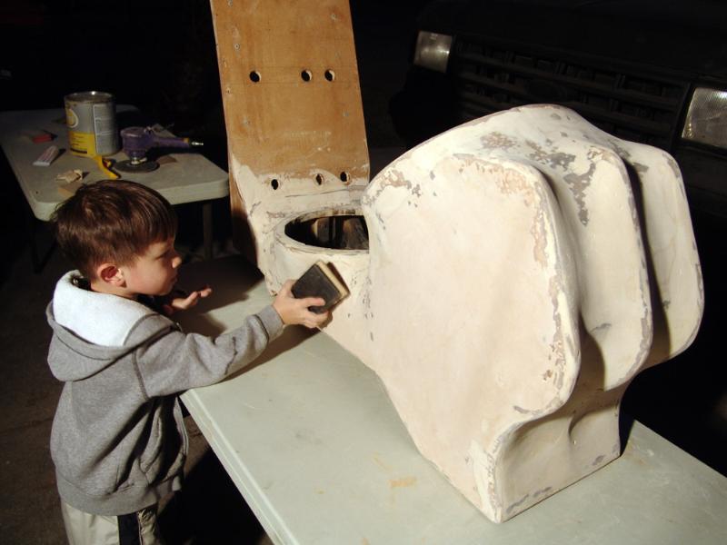 Noah helping with some sanding