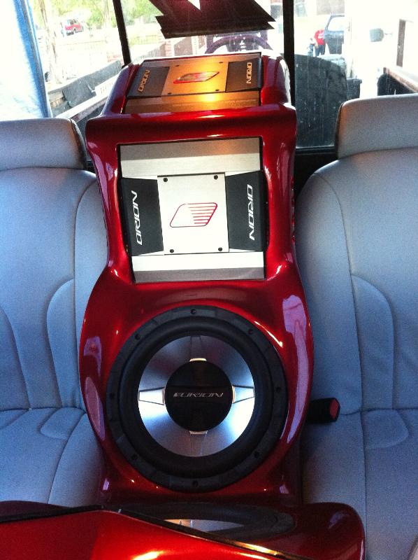 2-12 inch orion with 3 orion amps, 2 pair of orion components, jvc dvd, 2-7inch xfile rear monitors, 1 15 inch insignia led tv.