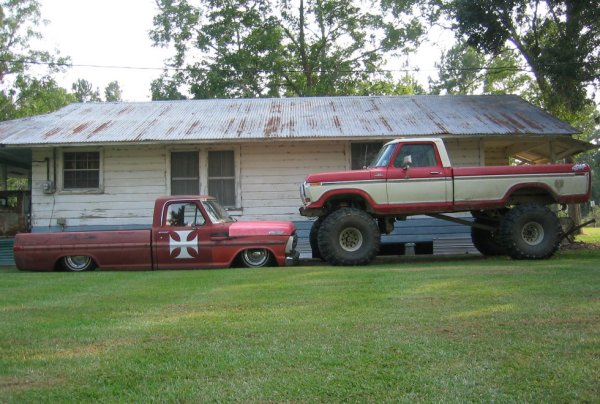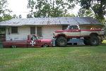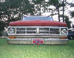 longbed,faded red paint,pinstriping,iron cross's,alot of stickers,stainless fuel tank in front of bed