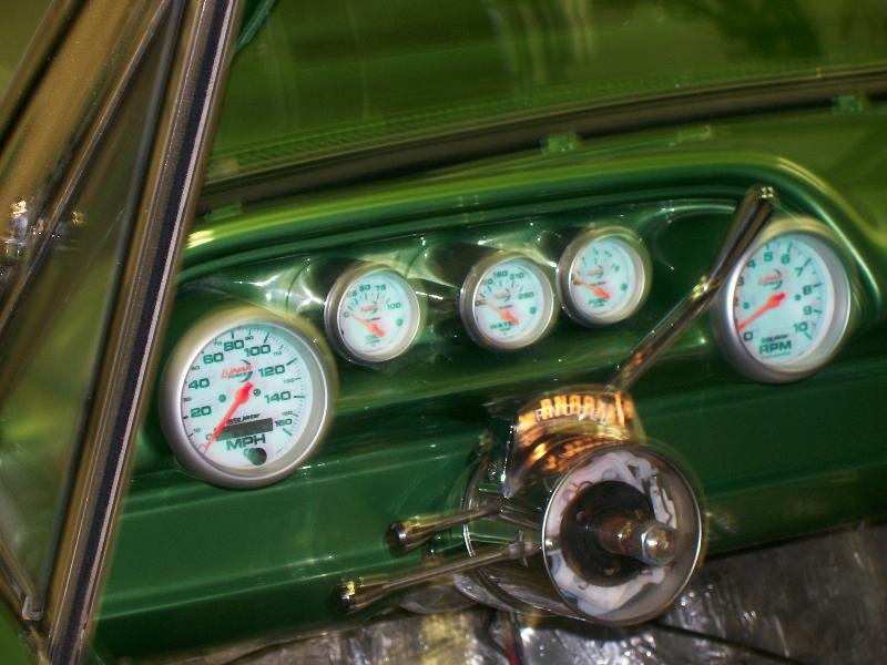 tan leather shaved dash custum maid gauge pod flaming river polished stainless tilt stering colume with a boyd turbine sterring wheele