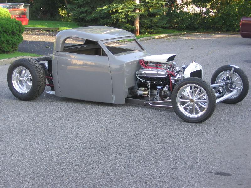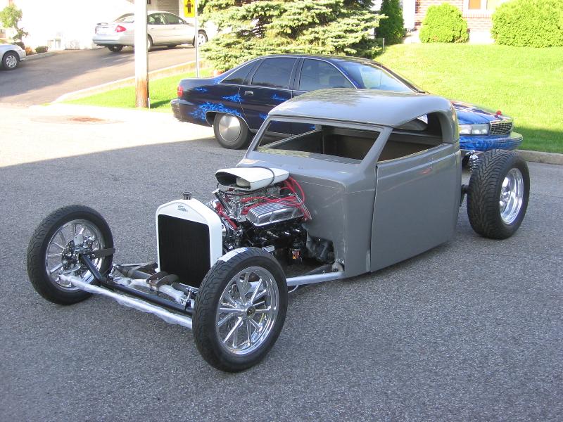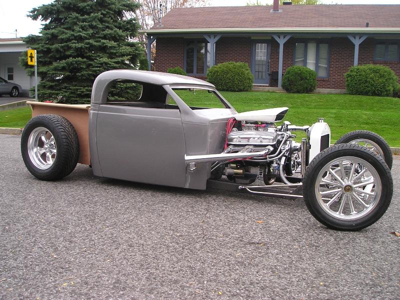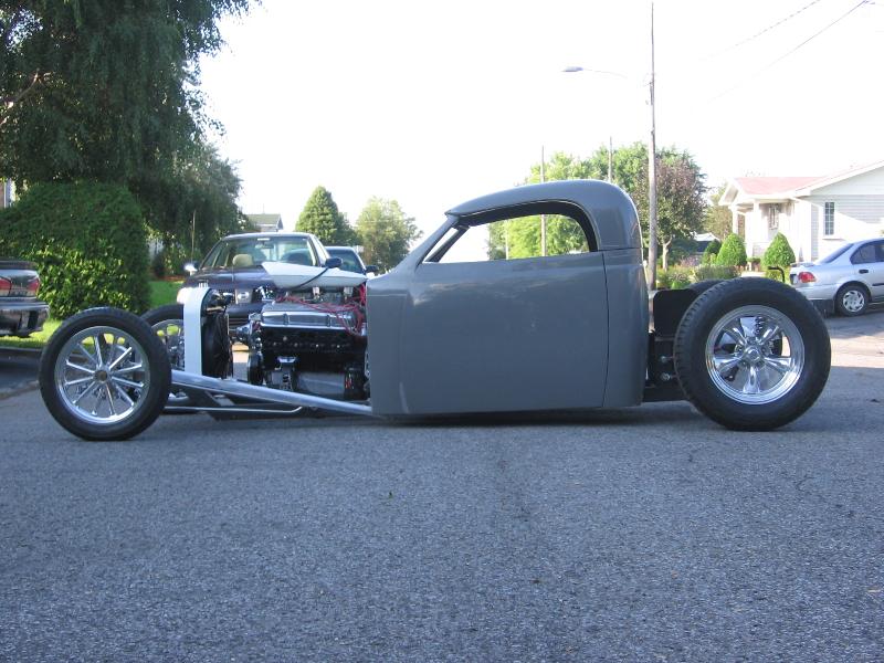 37 ford p-u cab (from OZE rod shop up here in Quebec), with convertible hardtop, 27 T radiator/grill, will have a custom made bed out back... paint to come