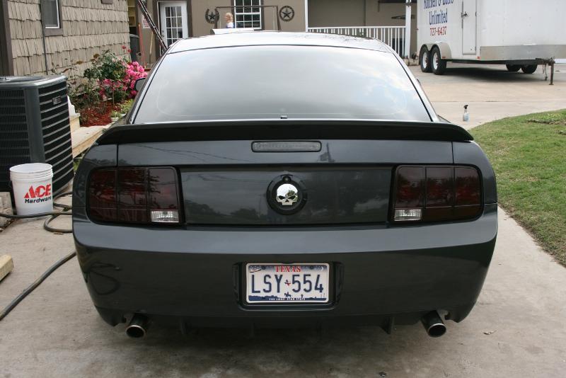 GT500 front end conversion, GT500 spoiler, GT500 rear bumper, Trufiber Venom hood, 8k HID headlights, Custom rear emblem, tinted tail lights, smoked side markers, smoked front turn signal, smoked 3rd LED brake light