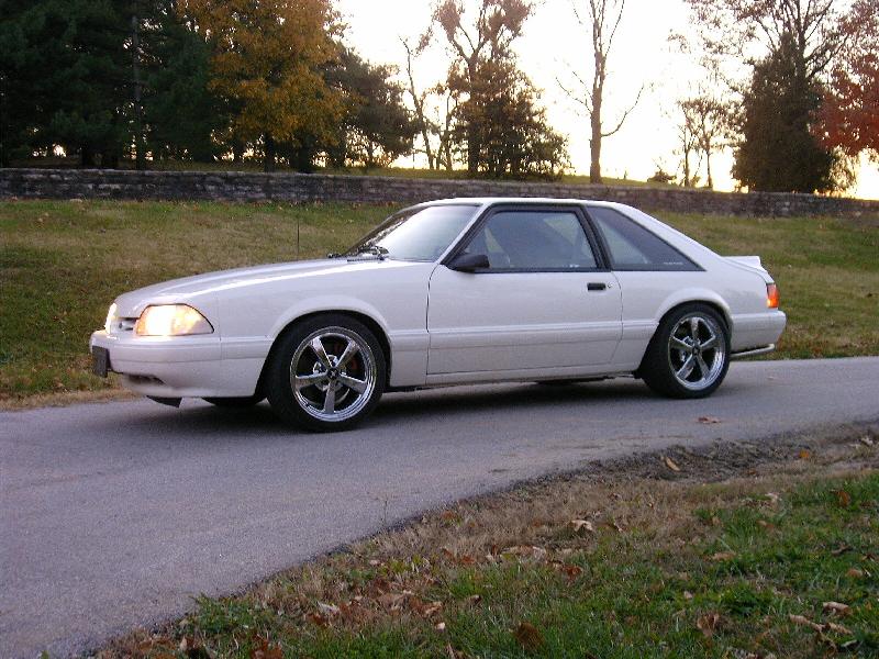 95 spindles up front with 13 inch cobra brakes, ranger axles in rear with 11.65 cobra disc brakes, braised brake lines, 95 booster and master cylinder, wilwood proportioning valve, roush racing lower control arms, moog upper control arm bushings, boxed upper control arms, energy suspensions front control arm, sway bar and end link bushings, H&R sport springs, bilstein shocks and struts, maximum motorsports caster camber plates, bump steer kit and strut tower brace