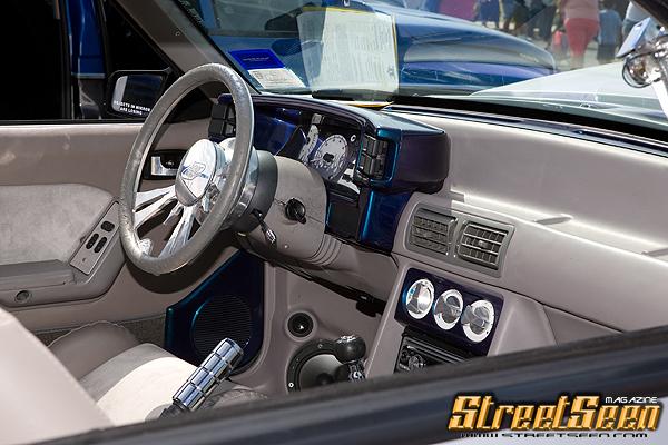 Two toned with a chromalusion breaking line, shaved doors and antenna, hood, bumpers, wing, ground effects