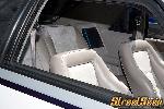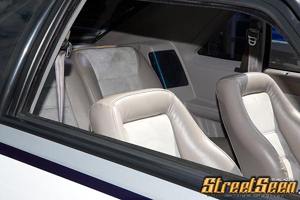 Grey racing seats with headrests chopped off and grey suede inserts and completely painted dash