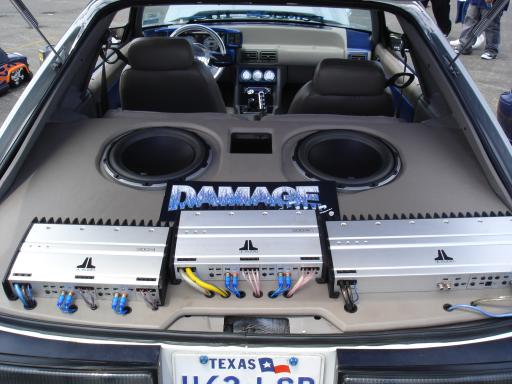 JVC head unit, 2 twelve inch JL Audio W6v2s, all JL Audio components, JL Audio 300/4 amp and a JL Audio 1000/1 amp