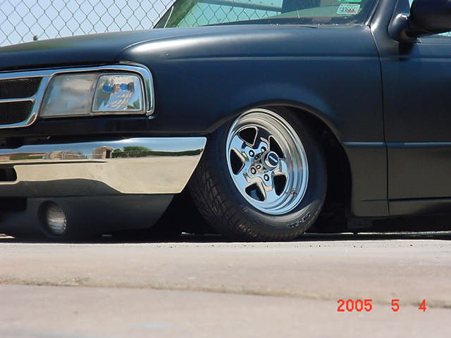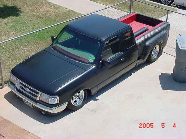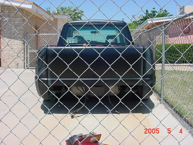 Satin Black...Shaved tailights, emblems, cab & rear body lines, 3rd brake light, antenna, wiper cowl, pass. door handle, tailgate. Removed side moldings. 4wd valence, smooth chrome front bumper.