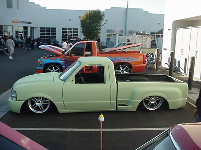 4 INCH BODYDROP!!!! 2002 front edge 4x4 bumper with fog lights clear corners shaved 3rd brake light shaved rear emblem shaved handles shaved tail gate handle molded rear end molded cowl even molded to the fenders soon to be accompanyied by a 2001 front clip