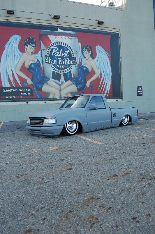 shaved bumper,emblems,antenna,door handles, fuel door(moved to bed floor), billet grille.