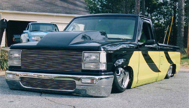 4in.Body Drop,chrome 4-Link,RS-72 SLAM bags up front and Firestone 2600LB. bags in the rear.1-Viair 450 compressor and 2-3gallon tanks.3" dropped "Dream Beams" and 4" flip kit.16 gallon fuel cell in bed.
