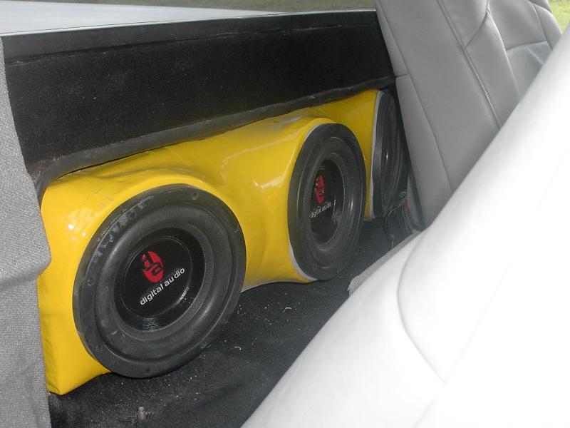3-8" Digital audio subs built in custom fiberglass box by Eric at Low Budget Audio,1-MTX 425Watt amp,Sony Xplode mids and highs