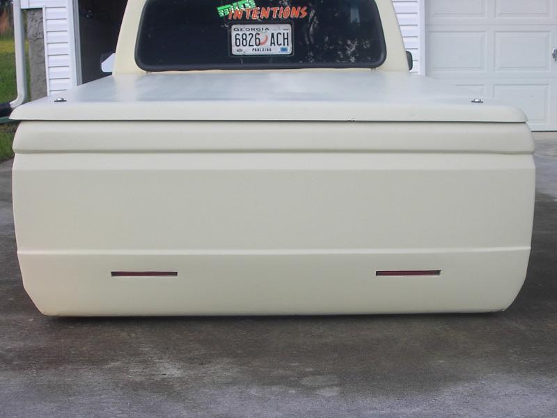 shaved:emblems,door handles,tailgate handle, keyholes,rear cargo light,tailights,stake holes,shaved cowl,cowl molded to fenders,fenders molded to rockers,radiused door corners,shaved rain gutters,shaved rear end with 8" l.e.d. tailights.polished billet grille,billet antenna,front clear lights,chrome Toyota front bumper & valance with billet insert,chrome Toyota mirrors,sittin in tan primer.