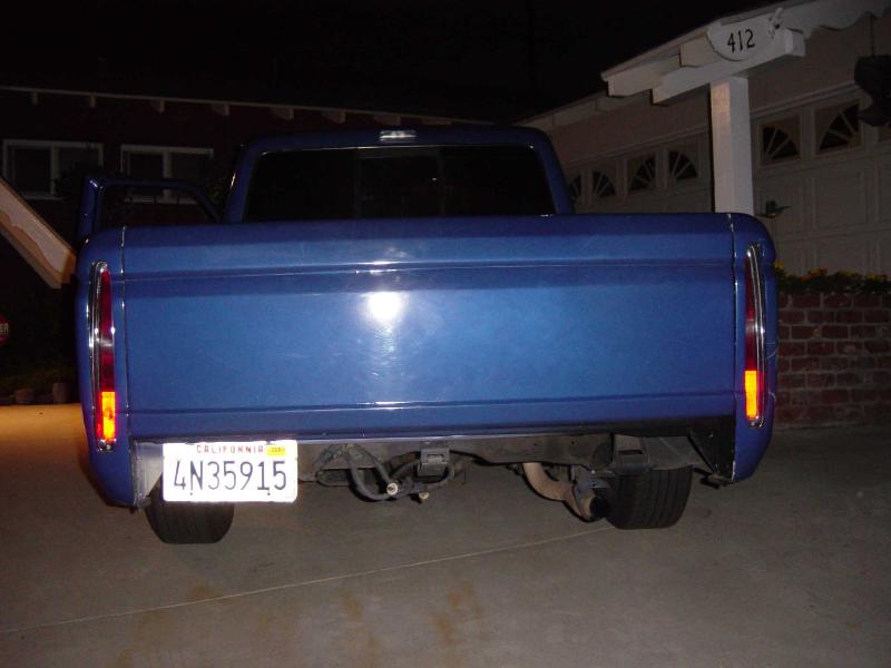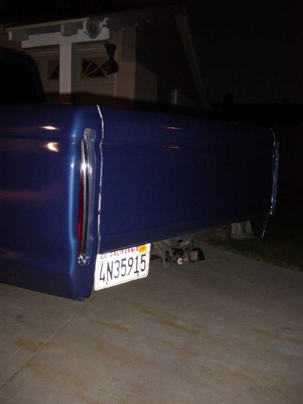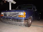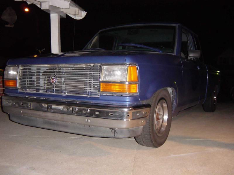 Caddilac tail lights, shaved tailgate, billet grill with caddy emblem, custom electric blue pearl paint.