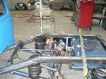 Bumper to bumper 2x3 frame, one off front suspension using Toyota spindles and a Mustang rack, Triangulated 4 link, Rear suspension and front suspension changes by Little Shop of Horrors