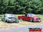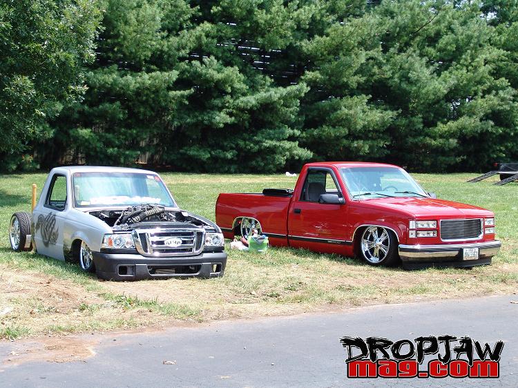 2007 front end, 1 piece headlights,shaved door handles, shaved antenna, shaved 3rd brake light, ass end smoothed (grant kustoms combo), 39 ford taillights with devils head lens, 2 frenched antennas on passenger side of the bed, shaved emblems, smoothed back of cab, shaved gas door, bead rolled firewall, bodydropped, etc..