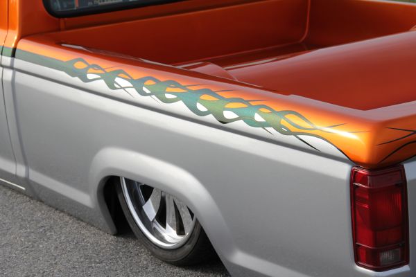 Stock Floored,Shaved Handles, Emblems,Mirrors, Stake Pockets,Full skin combo, shaved cargo light and antenna, Full sheet metal bed, pop up gas cap in bed rail. PPG Paint