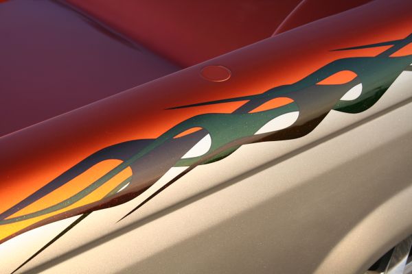 Painted and Leather and suede, fiberglass center console.billet rear view, window cranks, steering wheel