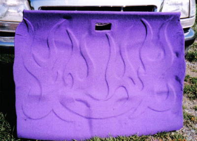 Sculpted, flamed purple tweed headliner; purple tweed misc pieces; Mirage purple-to-green painted pieces