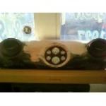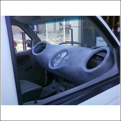 Resined and glassed dashboard, new gauges, going with a billet steering column. All sterio and fiber glass work performed by Randy Stockman at Audio Vision in 29 Palms California. 760-799-7528
