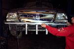 Shaved Door Handles, rain gutters, attenna, squiters, Grant Kustoms Combo with 2-12" Hi Tech Led's, shaved thrid brake light, 10" Hi Tech Led, shaved gas door, shaved tail lights, painted Mercedes Quartz Blue
