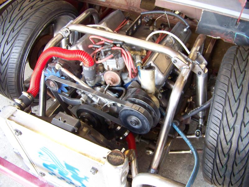Full built custom frame front to back. Toyota clip with a front Cantilever setup. Kustom Werks Tubular arms. Explorer disc brake rear axle narrowed and powdercoated. Cross drilled and slotted rotors front and rear. Clear diff cover. Engine driven.