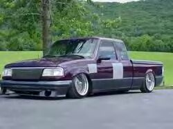 Shaved handles, tailgate, and emblems, bumper cover, rollpan, tint, Gaylords hard tonneau, clear corners/tails, billet grill; gray Herculiner bedliner, 35"x35" Streetbeat Canvas ragtop (not shown in pics), solid rear window out of a 2001 Ranger standard cab