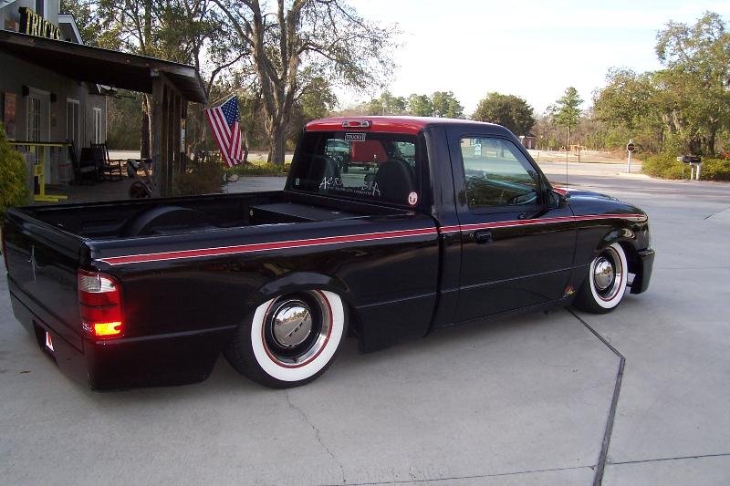 Full air ride suspension, Slam bags all the way with E valves. Custom triangulated 4-link in the rear.