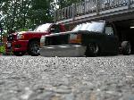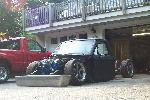 triangulated 4 link, custom frame,one off front clip,bellteck yota spindles, 3 1/2 inch body drop, slambags,2 viair 400,1/2 valves,2 5 gallon tank.