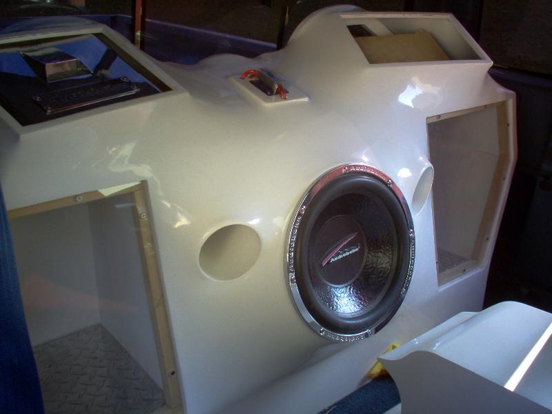 custom built fiberglass speaker box and console built by greenhouse efx