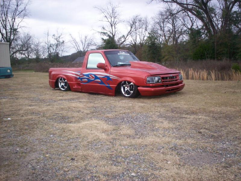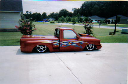 regular cab splash, prowler orange with graphics, custom flush mount bed cover, sir michaels steel roll pan, clear front markers, and euro tails