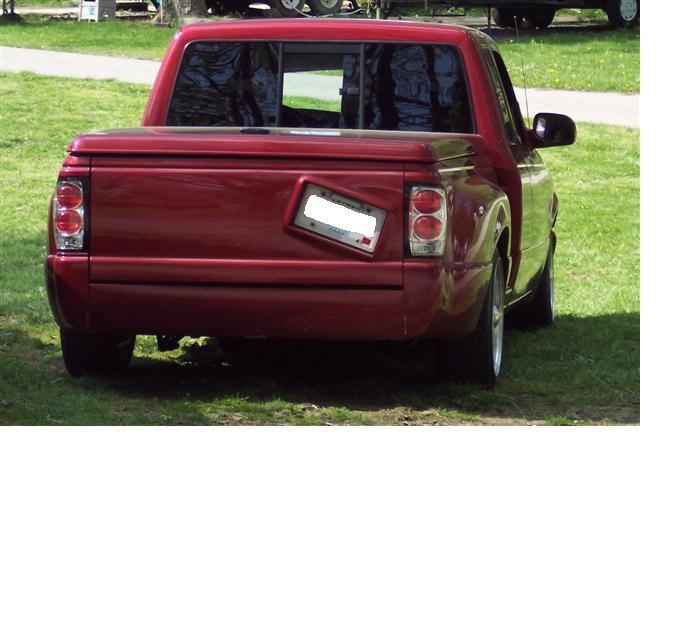 Shaved door handles, tailgate handle, emblems, frenched antenna, license plate in tailgate, billet grill, clear lights all around, fiberglass bedcover, rollpan, shaved third brake light, shaved washer nozzles.