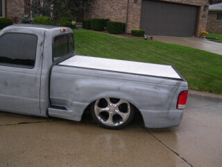 shaved everything!!! rain gutters, handles, emblems. Xenon bumper, bmw mirrors, bed cover. Had a rollpan, we said goodbye to on highway 54!
