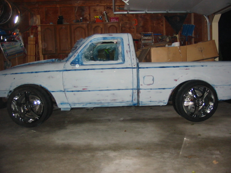 shaved antenna, fenders, cab seams, 3rd break light, tailgate, doors, stake pockets, molded in grant kustoms curved roll pan