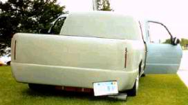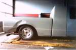 IF it could be shaved it was.. Upper body line, rain gutters, third brake light, handles, emblems, Supercab windows, welded bed closed, 10 inch taillights in stock location, Lots of primer full tilt front end, possible a front end swap
