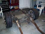 air of course.frame from firewall back to a thunderbird irs, and modified djm lowers up front(and djm uppers).cutting all the front crap off and rebuilding with mustang2 goodies