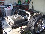 Slam RE-6's & RE-7's , djm arms, tri 4-link w/ bags on upper bars, 5" narrowed rear w/ mustang disc brakes, chrome Carrera/QA1 cantilevered rear shocks w/heims, GC 250 valves (1/2 fill, 3/8 dump), 1/2 line, color matched 8 gal tank, york 210 EDC