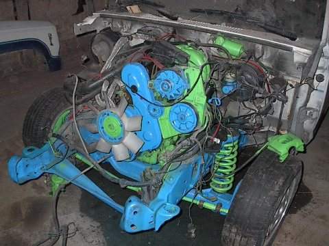 3 inch drop dream beams in front for the rear chrome 4 link 10 switch set up on it 2 ton hopping springs 4 HI LOW pumps.8 batteries. frame boxed and c knotched frame chopped 2 inches under cab. radious are relocator tranny relocator