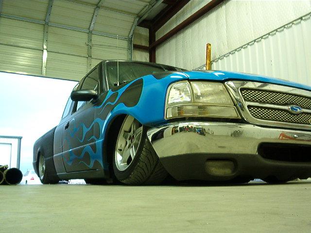 Air ride, 1/2" everything, 6 gal. for front, 3 gal. for rear, 3/4 hp compressor,1/2" aluminum hardline, 2 1/2" zeed front clip, new frame from firewall back, 2-link with z-link, mustang gas tank in rear