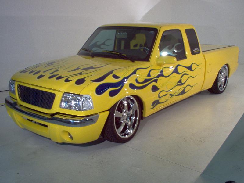 Chrome yellow paint w/ cobalt blue marblized flames pinstriped lime green & ice pearl clear coat