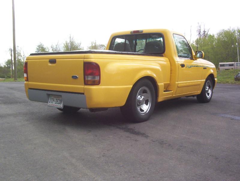 painted Canary Yellow, Sir Michael's steel roll pan with frenched in license plate box, soft tonneau cover