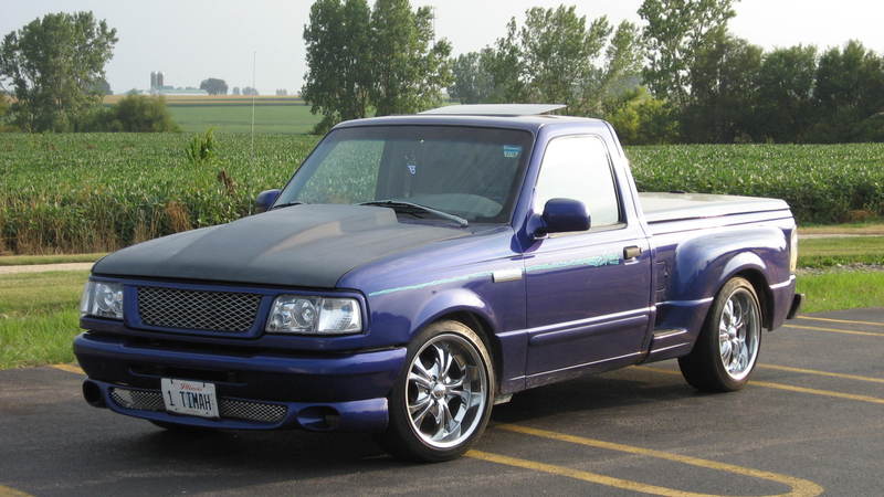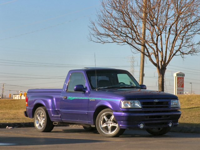 Ford Factory Bright Metalic Sapphire Blue color code JA, street scene front valence, underdog line of fire led, 8000k tenon hid's and fog lights, apc white rear tails, projection headlights and rocking the RPS window sticker, and now the cowl hood is on!!